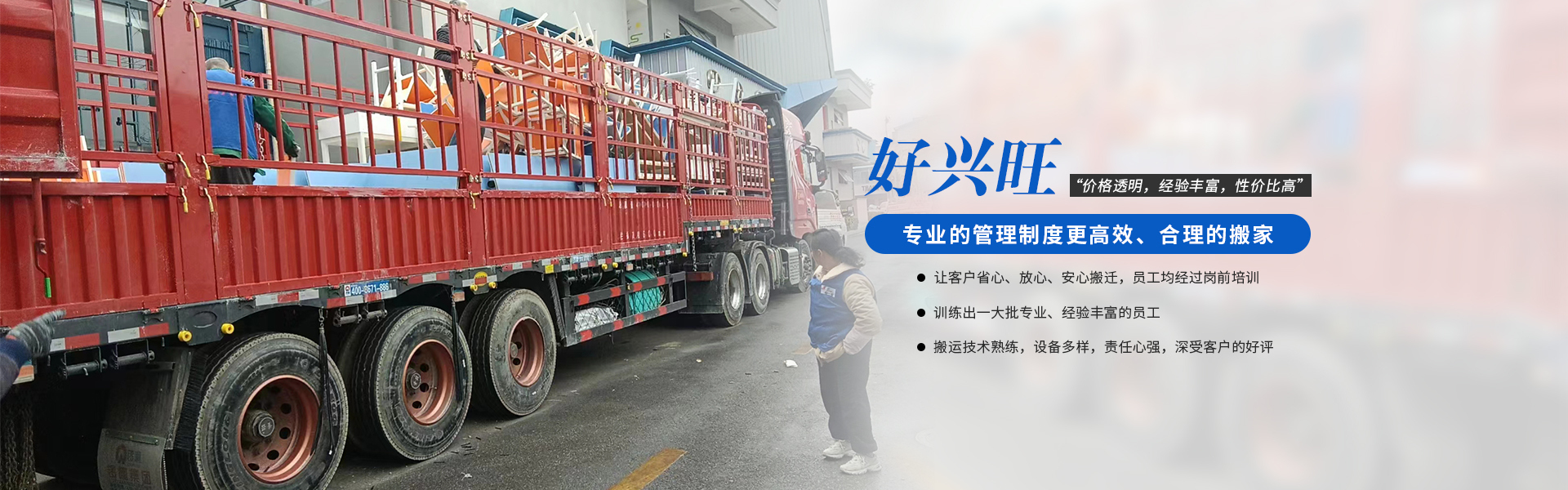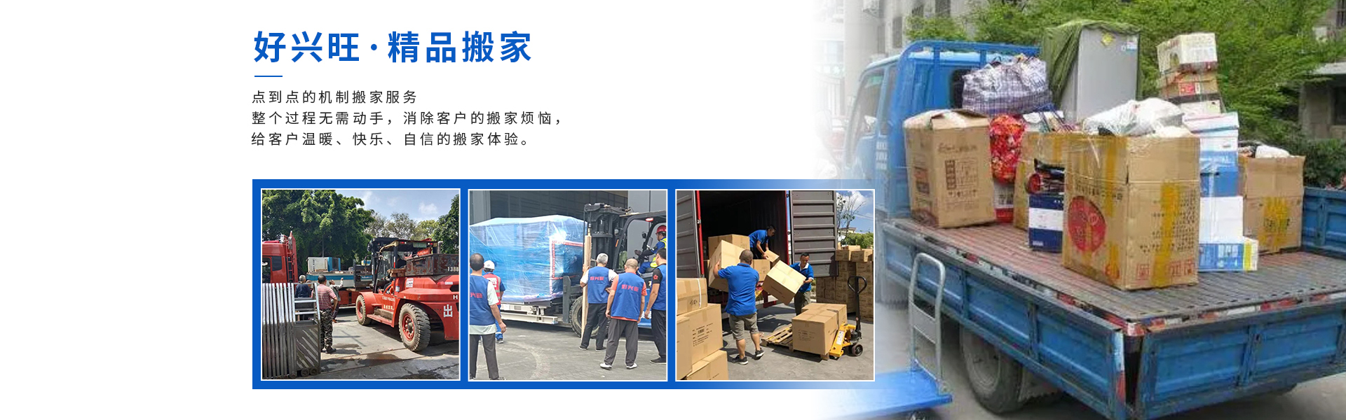 成都好兴旺搬家有限责任公司在行业内精耕细作二十余载,是一家综合性的大型搬家运输企业,涵盖同城搬家、跨市搬家、写字楼搬家、店铺搬家、学校搬迁、企业搬迁、收纳整理、锅炉类设备搬迁、机床类设备搬迁、机组类设备搬迁、大型工业设备搬迁、起重吊装服务、搬运拆卸人力、精密设备搬迁、空调拆洗、仓储保管、专 业打包及纸箱包装材料销售、小时工劳务、保洁服务、重型吊装、除甲醛、服务器搬迁等多种服务。
